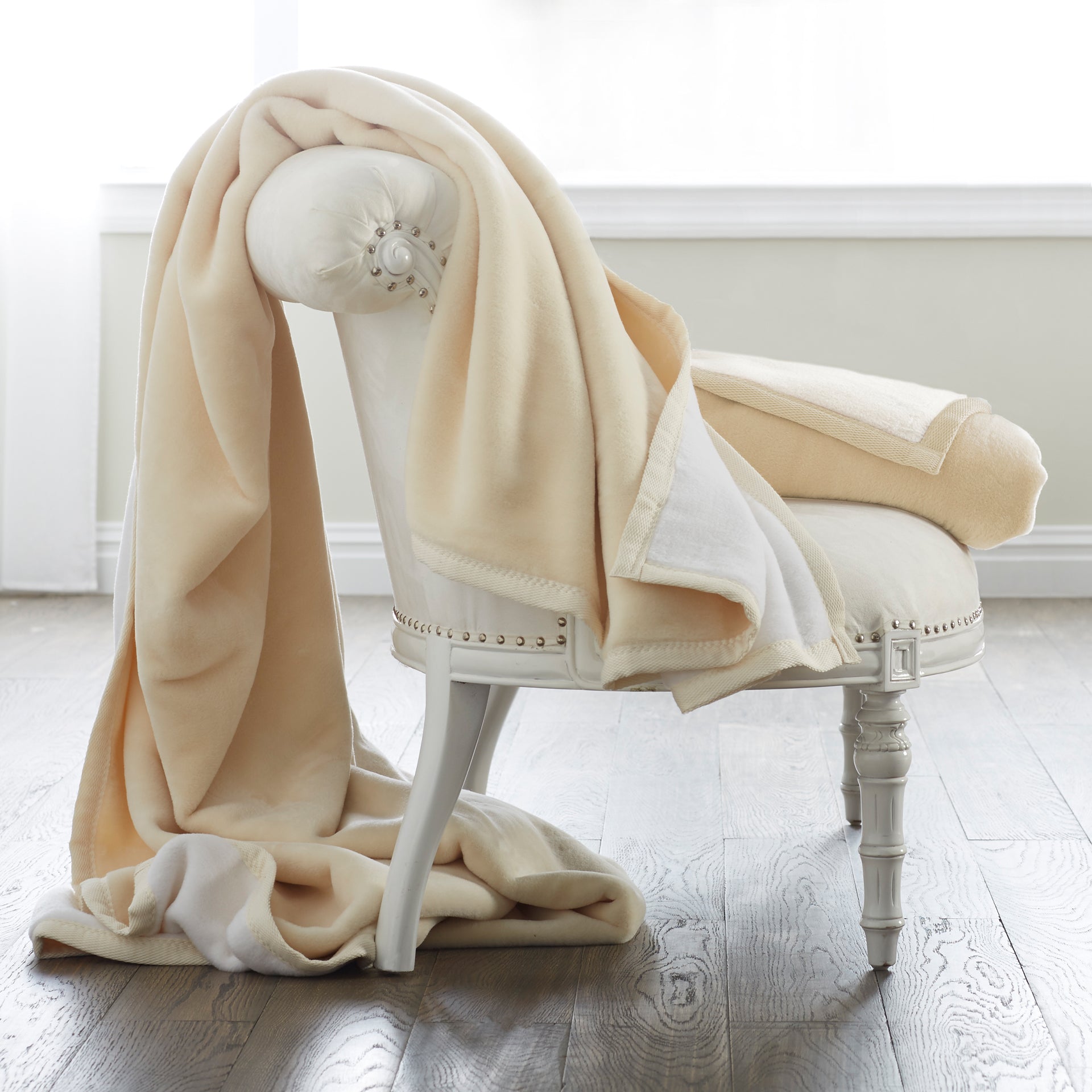 Whether draped across the back of a sofa or folded at the foot of the bed, our reversible plush cotton blanket adds touchable texture wherever it’s placed. This decadently plush piece is made from two layers of soft, thick cotton in a velvety pile and reverses from white to cream for added versatility. Skillfully crafted in Portugal, the blanket is finished in a decorative herringbone border to complement any decor style.